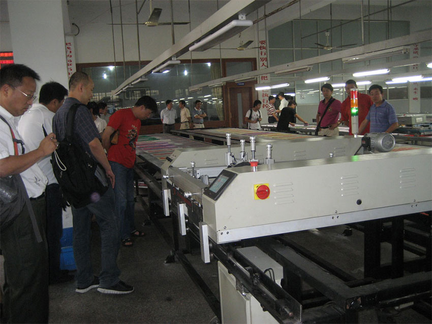 4、采用了圖文并茂的人機界面,數碼控制,操作方便簡易、穩定性好;機械式換刀并壓力可調,套色印花精度高,印花均勻,質量穩定。